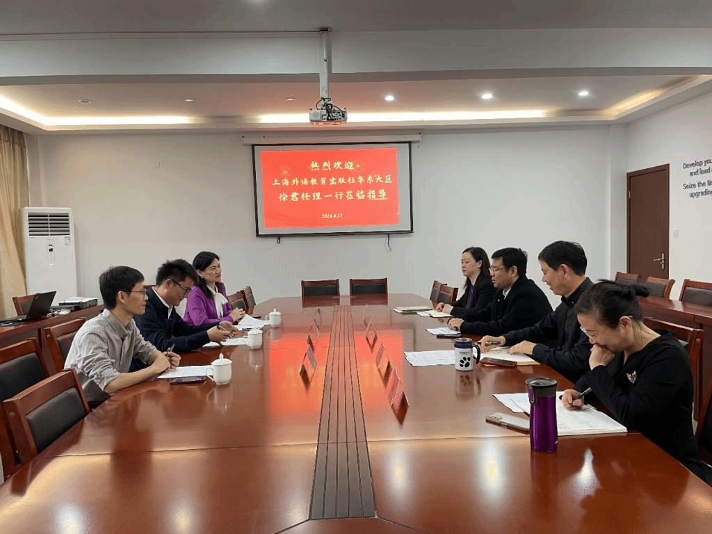 4月17日下午,经理王刚、副经理卢立伟、跨文化交流中心主任林佳欣、商英系系主任戴敏与上海外语教育出版社华东大区徐君经理一行进行了洽谈。