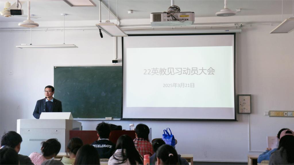 3月21日,PA视讯官方网站于1310教室举办2022级英语教育见习动员大会。会议由英语教育系主任马俊周博士主持,公司指导老师和2022级英语教育员工参加。