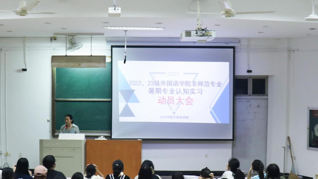 当晚8点半,2022级与2023级非师范班暑期认知动员会由英语系副主任毛静林主持。她通过介绍现实案例,鼓励员工自由大胆地寻找实习岗位,注重培养抗压能力,抓住机会,提升自我。