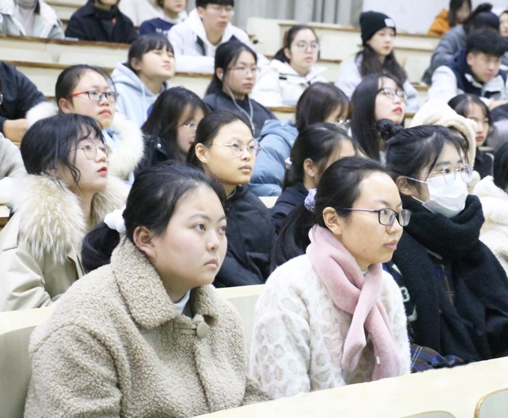 台州市最美老员工、国家奖学金者陈江洪结合自身大学三年的学习成长经历分享作为一名师范生的进阶之路。她还从着装、表情、心态等其他方面给大家提供了许多有建设性的意见和建议,分享了很多实用的资料和信息,对考编题型进行针对性分析与复习,并强调了基本功培养和实习实践的重要性,并详细解答了同学们提出的问题,帮助大家少走弯路、轻松备考。